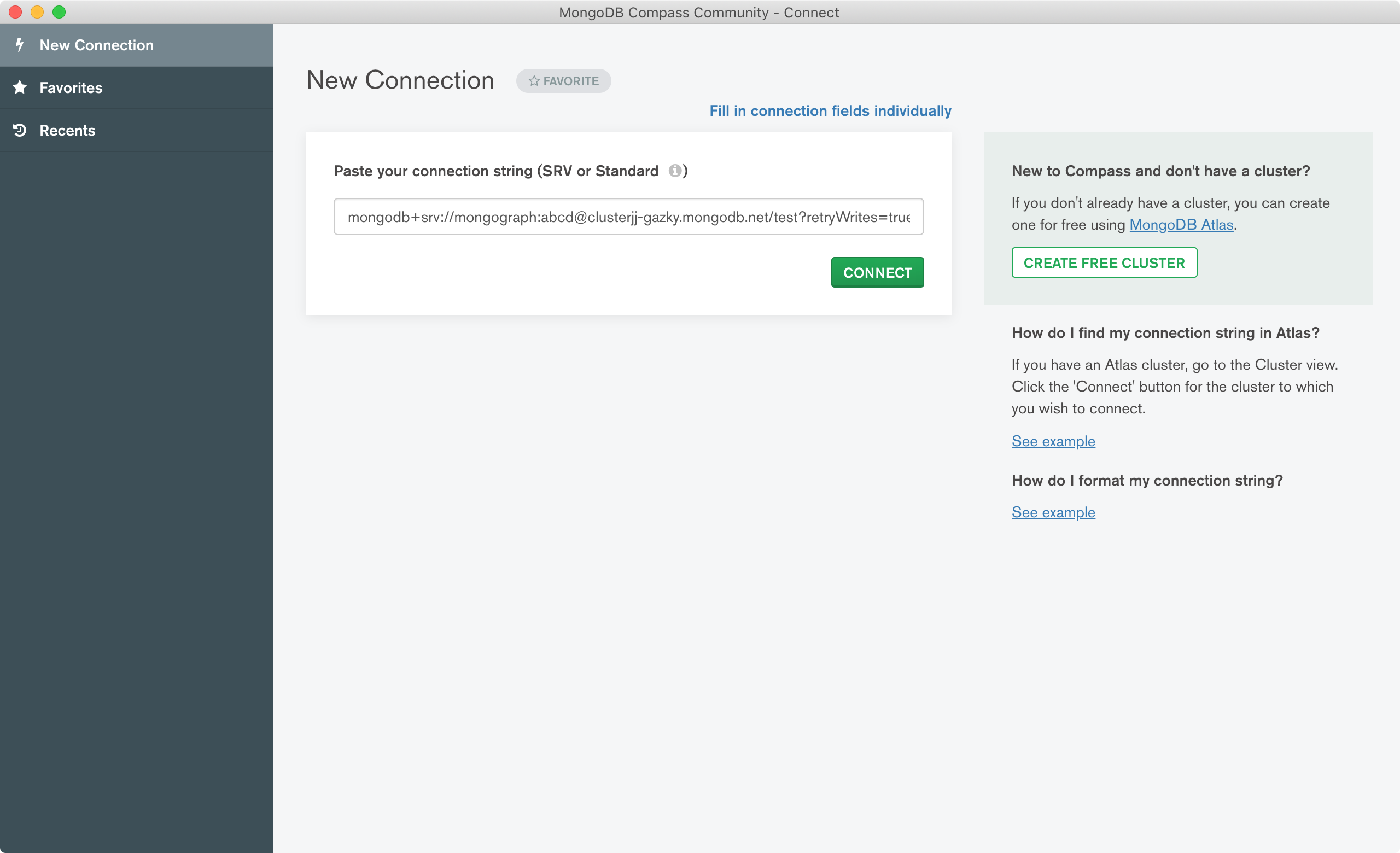 To visualize your MongoDB instance download MongoDB Compass from their website. Use the connection string from the previous step if you want to connect to the hosted cluster directly.