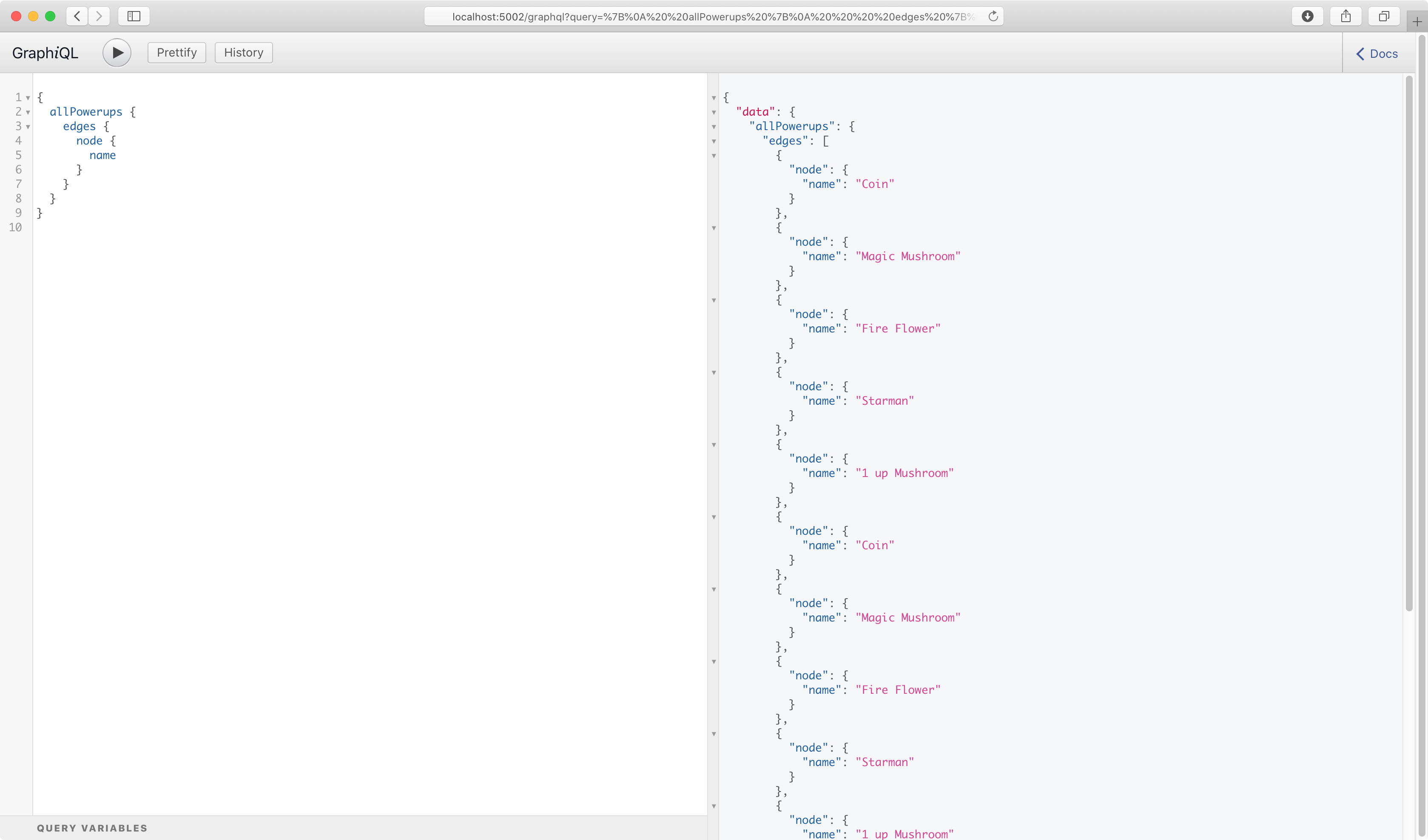 Go to localhost:5002/graphql and run the allPowerups query to get back the names of all the power-ups.
