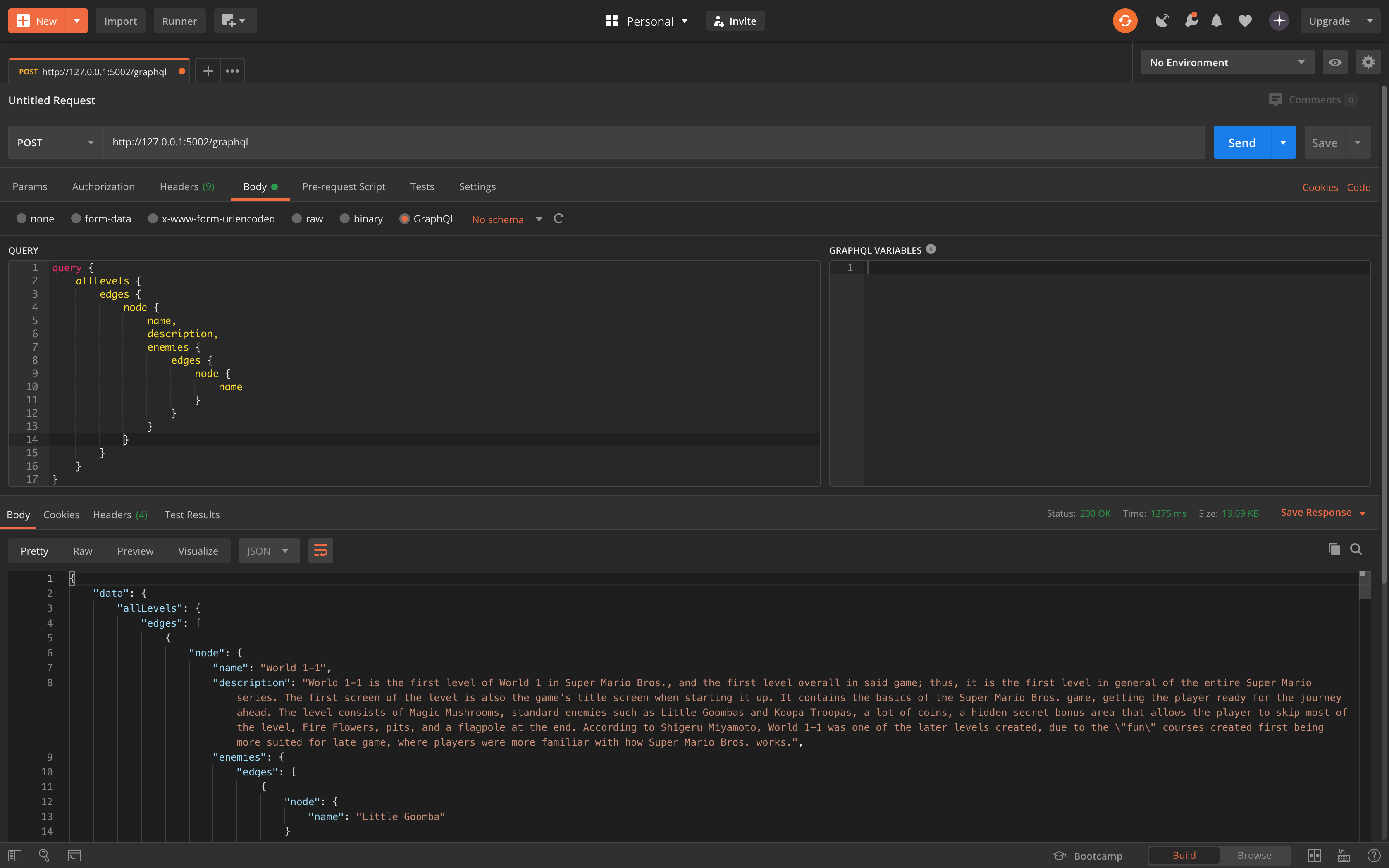 And that should do it. Check my GitHub for the code. In another post I want to explore GraphQL further and implement filtering and pagination.